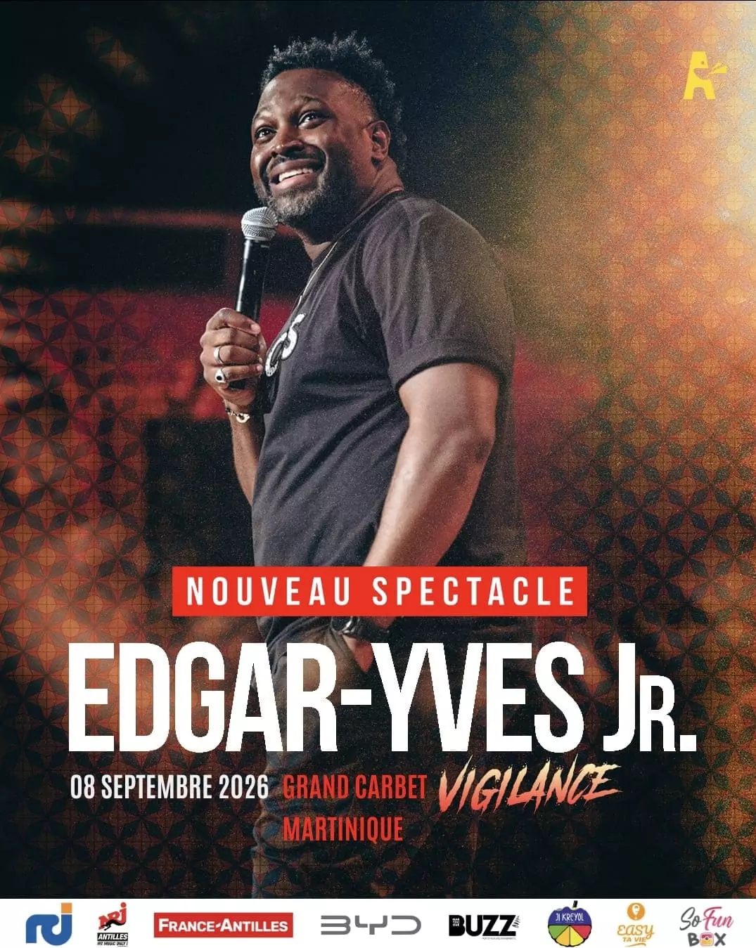 ECLATSPROD presents EDGAR YVES in his show "VIGILANCE" Following the success of his shows J'vais l'faire , Certifie Taquin and Solide , Edgar Yves returns to the stage with a new show that's even more daring and hard-hitting! A French-Beninese humorist with boundless energy, he has established himself as one of the leading figures on the French stand-up scene. His humor combines corrosive punchlines, reflections on our society and a commitment to intelligent, responsible freedom of expression. In recent years, Edgar Yves has enjoyed immense success in the West Indies, where he has forged a strong bond with his audience. He'll be back in France with his exceptional new show, not to be missed! In 2026, Edgar Yves returns, more inspired than ever, with a show that combines laughter, emotion and hard-hitting truths. TICKETS Grand Carbet du Parc culturel Aime Cesaire, Place Jose Marti, Fort de France