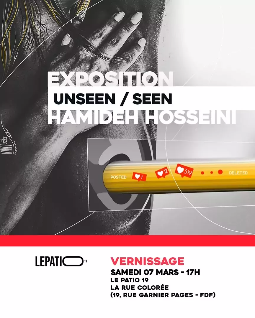 A woman carries many worlds within her. Some live in the shadows. Others are exposed to implacable light. In the first series, the female body withdraws - not out of weakness, but to preserve itself. It protects itself, gathers its strength. It exists beyond approval, beyond performance. In the other, the body stands under the gaze - filtered, measured, consumed. Here, intimacy becomes image. Emotion becomes symbol. The body becomes content. Unseen / Seen is not a complaint. It's an affirmation. Between invisibility and overexposure, between silence and spectacle, women don't disappear. She reappropriates herself. She resists. She transforms herself. She remains -- not as an image to be looked at, but as a presence impossible to erase. A woman carries worlds within her. Some are kept in shadow. Others are exposed to relentless light. In one series, the female body turns inward --not in weakness, but in preservation. It folds, it protects, it gathers strength. It exists beyond approval, beyond performance. In the other, the body stands beneath the gaze - filtered, measured, consumed. Here, intimacy is translated into image. Emotion into symbol. The body into content. Unseen / Seen is not a complaint. It is a statement. Between invisibility and overexposure, between silence and spectacle, a woman does not disappear. She reclaims. She endures. She transforms. She remains - not as an object to be seen, but as a presence that refuses to be erased. Hamideh Hosseini January 2026 Exhibition - 07/03 to 02/04 Vernissage - 07/03 a partir de 17h LePatio19, Cafe Cultural CoWorking, La Rue Coloree, 19 rue Garnier Pages, Fort de France