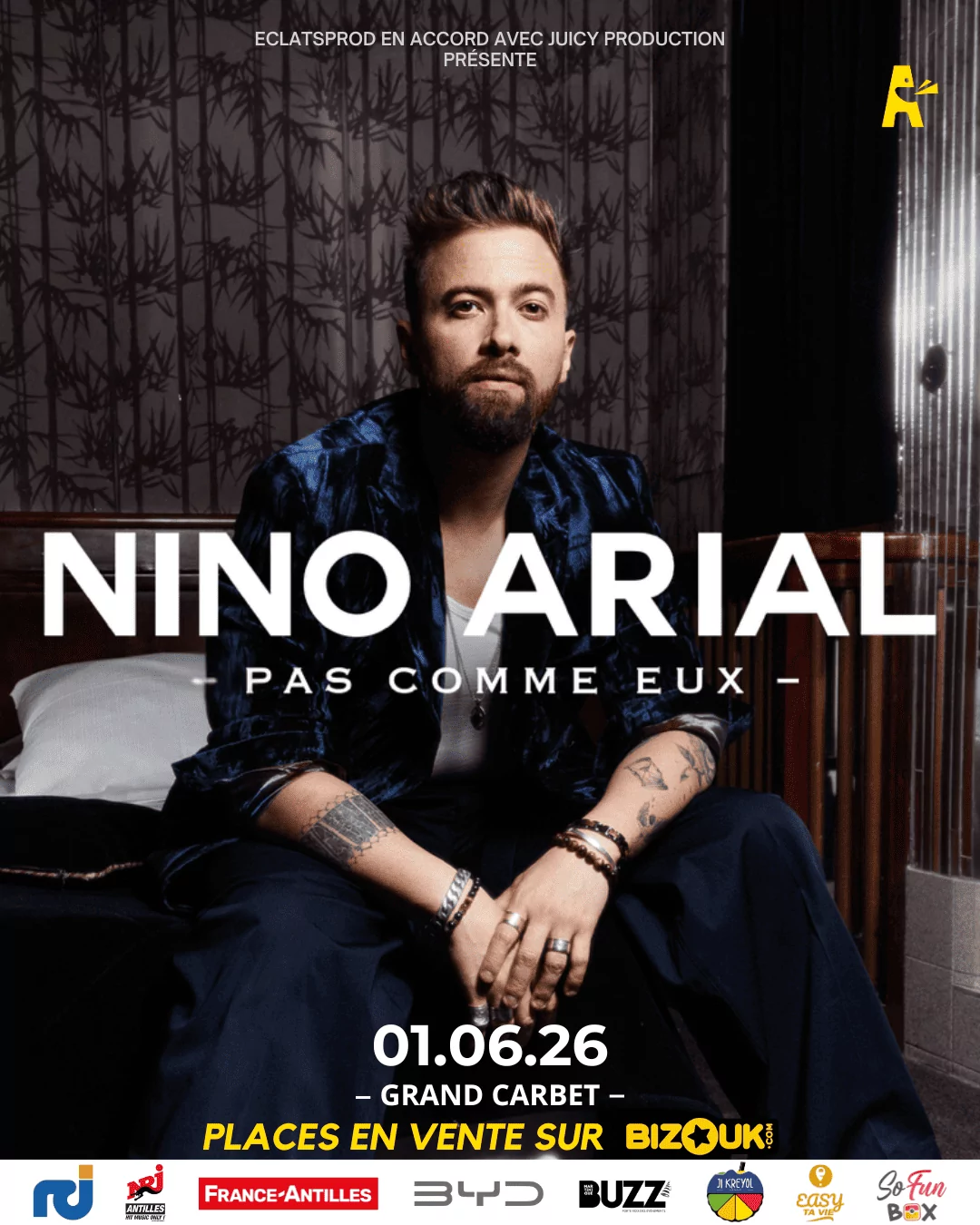 Julian Marley Pour la premiere fois, Julian Marley foulera la scene martiniquaise.Un moment historique. Un symbole. Une benediction musicale.Fils du legendaire Bob Marley, multi-instrumentiste, artiste engage, Julian Marley porte en lui la flamme du reggae roots, mais aussi une identite unique, profonde, meditative. Depuis les annees 90, il diffuse un reggae conscient, vibrant, empreint de foi, d'amour et de resistance. Avec des albums comme Lion in the Morning, Awake ou encore le recent Colors of Royal -- recompense par un GRAMMY AWARD -- il s'est impose comme l'une des voix les plus authentiques et respectees du reggae contemporain.Son message est universel : elevation, unite, spiritualite.Sa musique traverse les frontieres, les generations et les coeurs. Barrington Levy Veritable pionnier du dancehall et du reggae roots, Barrington Levy a marque l'histoire avec des classiques intemporels comme Bad boyz , "Here I Come", "Under Mi Sensi" ou encore "Murderer". Sa voix reconnaissable entre mille et son style unique ont fait de lui l'un des artistes les plus influents de la scene reggae internationale. Depuis les annees 80, il a enchaine les hits et collabore avec des icones du reggae et du hip-hop, imposant son univers partout dans le monde. Sur scene, son energie et son charisme transforment chaque performance en un moment de communion totale avec le public. Tarrus Riley The SUPERMAN Tarrus Riley c'est bien plus qu'un chanteur, c'est une voix incontournable du reggae moderne, un artiste qui a su marier l'heritage roots avec une energie soulful et des textes porteurs d'amour, de conscience et de spiritualite. Depuis le debut des annees 2000, il fait vibrer les scenes du monde entier avec des classiques comme She's Royal, Gimme Likkle One Drop, Good Girl Gone Bad, ou encore Human Nature. Sa voix unique et son charisme en font l'un des artistes les plus respectes de sa generation. Ne a New York mais eleve en Jamaique, fils du legendaire Jimmy Riley, il incarne la continuite et le renouveau du reggae. Avec son directeur musical Dean Fraser, il a construit un univers ou chaque morceau est une celebration de la vie, de l'amour et de la resistance. Ses albums (Parables, Contagious, Love Situation...) sont devenus des references, et ses collaborations avec des artistes internationaux ont confirme son statut de star mondiale du reggae. Reemah Originaire de St. Croix dans les U.S. Virgin Islands, Reemah est decrite comme l'une des artistes reggae les plus talentueuses et les plus attendues de sa generation. Sa presence scenique, sa force spirituelle et la puissance de ses messages en font une artiste a part, de celles qui marquent les esprits et elevent les consciences. Son reggae est un appel : verite, guerison, resistance, lumiere. Avec des titres comme "Don't Want Nothing", "Everbless" ou encore ses hymnes conscients salues par la critique, elle s'impose comme une voix essentielle du mouvement roots moderne. Sur scene, Reemah captive. Elle ne chante pas seulement : elle transmet, elle rassemble, elle eleve. SHANKY Figure emblematique des annees 90, Skanky a faconne l'ADN du reggae/dancehall martiniquais. Sa voix, son flow et son authenticite ont marque toute une generation et continuent d'inspirer la scene actuelle. Quand il monte sur scene, c'est toute l'histoire du reggae peyi qui se reveille. Originaire du Francois, revele avec Digital HiFi, Ragga Soul, Metal sound, il a porte haut les couleurs de la Martinique avec une energie brute, un style reconnaissable entre mille et une presence scenique qui fait vibrer chaque public. Cette annee, il vient celebrer avec nous la culture, les racines et la puissance du reggae caribeen. Attendez-vous a un moment charge d'emotion, de souvenirs et de vibrations authentiques. Papa Tank Duo mythique forme par @Binok.Jennenga et @Pacojahz , Papa Tank a marque toute une generation avec des morceaux devenus cultes comme "Wayne", Money Money et "Tototo". Leur style explosif, melange de rap, reggae et dancehall, a redefini les codes de la musique urbaine en Martinique des la fin des annees 90. Sur scene, c'est une deferlante d'energie brute et de vibes contagieuses. Leur flow incisif et leur complicite font de chaque performance un moment unique, une communion totale avec le public. En 2026, Papa Tank vient rallumer la flamme et rappeler pourquoi ils sont consideres comme des pionniers du mouvement dancehall martiniquais. Loy Sonjah Artiste engage et creatif, Loy Sonjah incarne la nouvelle generation qui fait vibrer notre ile. Avec des titres comme "Kochi tet" ou "Kon soley", il mele reggae, dancehall et afrobeat pour offrir une musique a la fois consciente, festive et profondement enracinee dans notre culture. Ses textes parlent de racines, de societe et de spiritualite, tout en gardant cette energie qui fait danser et reflechir. Sur scene, Loy Sonjah transmet une vibe authentique, une force qui rassemble et qui inspire. Lieutenant Veritable pilier de la scene locale depuis les annees 90, Lieutenant s'est impose avec son flow incisif et ses textes conscients, refletant la realite des quartiers populaires et la force de la jeunesse antillaise. Avec des morceaux marquants comme, "Jamais tete baissee", Babylon lies , Backfull , 9mm , il incarne la determination et l'authenticite du reggae/dancehall peyi. Sur scene, son energie est explosive. Lieutenant ne se contente pas de chanter : il galvanise, il fait vibrer le public avec une intensite rare. Alborosie Veritable icone du reggae international, Alborosie s'est impose comme l'un des artistes les plus respectes de sa generation. Avec des classiques comme "Kingston Town", "Herbalist" ou encore "Diversity", il a su marier la puissance roots jamaicaine a une identite unique, reconnaissable des les premieres notes. Ne en Sicile, adopte par la Jamaique, Alborosie est aujourd'hui une figure incontournable du reggae mondial. Sa voix, son style et ses productions font vibrer les scenes du monde entier, et cette annee, c'es
