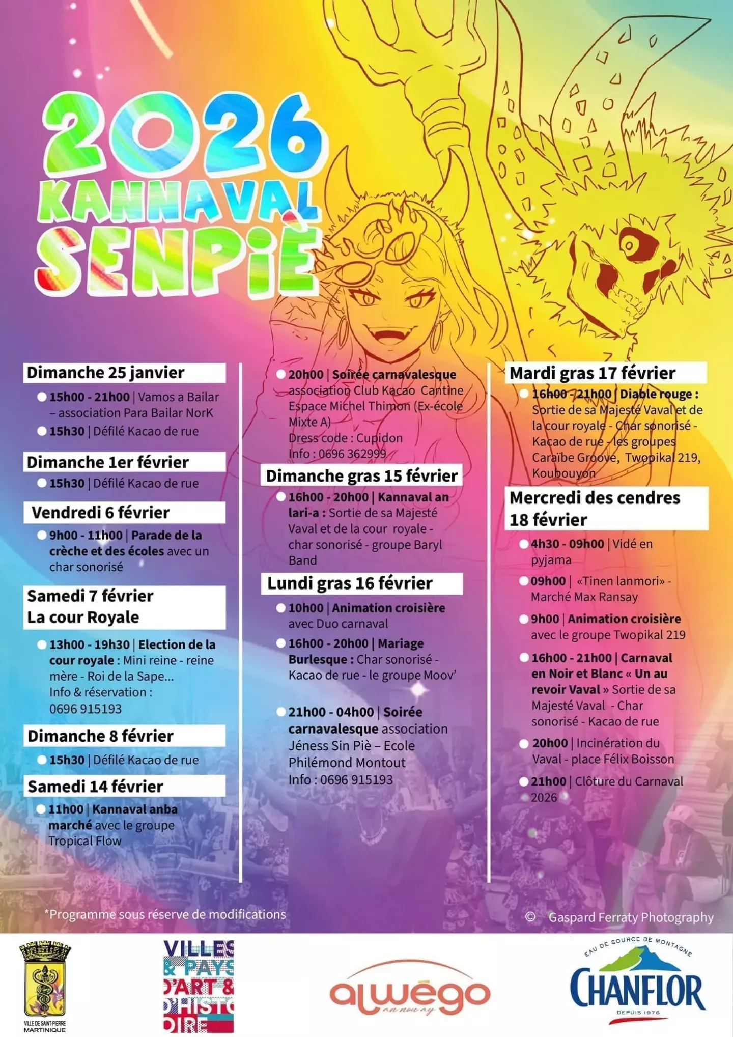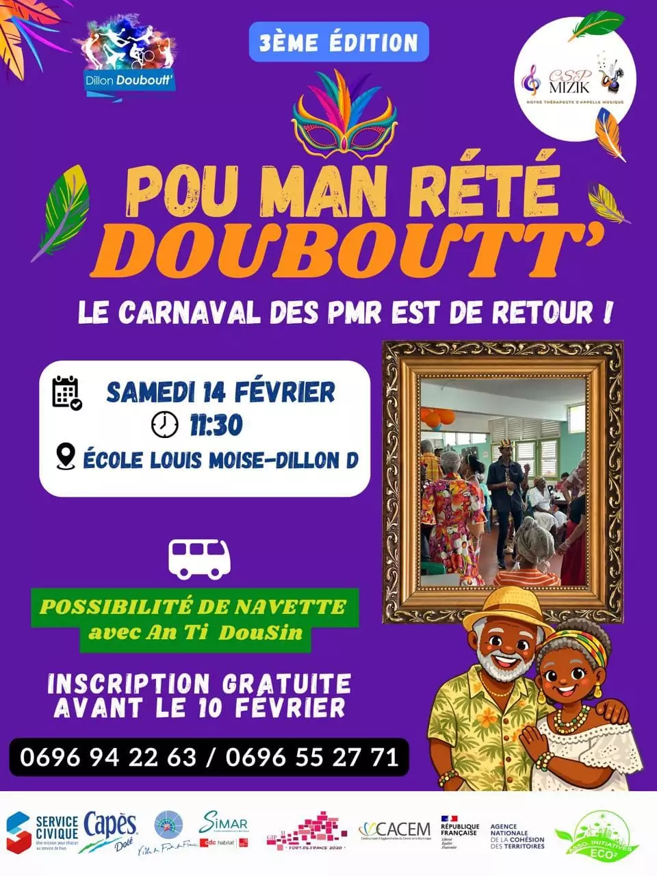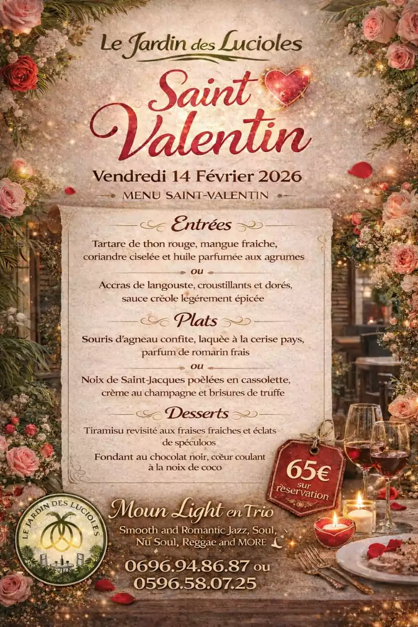 Carnaval au Jardin de Balata ! En fevrier, place aux rythmes, aux couleurs et a la creativite : percussions traditionnelles, ateliers nature, maquillage de carnaval et surprises poetiques pour la Saint-Valentin. Des animations festives a vivre en famille, au coeur du jardin Decouvrez le programme et rejoignez-nous ! Pour les reservations rendez-vous sur notre site internet. Atelier Masques et Baguettes nature pour le CarnavalEn collaboration avec Bulle de Nature, venez creer votre masque a partir d'elements naturels, au coeur du Jardin de BalataUn atelier creatif, ludique et inspire de la nature, a partager en famille pendant les vacances de Carnaval.Samedi 14 fevrier13h00, 14h00 ou 15h00Tout public a partir de 5 ans - Reservation obligatoire : www.jardindebalata.fr/atelierdumois Et si l'amour se murmurait au coeur de la nature ?A l'occasion de la Saint-Valentin, laissez-vous surprendre par "Le Jardin en poesie" et decouvrez votre mot doux a l'accueil, avant de vous promener main dans la main dans la canopee jardin.Une parenthese romantique, pleine de douceur et de poesie, a vivre en duo... ou simplement pour le plaisir de l'instant. Jardin de Balata, km 10, route de Balata, Fort-de-France, 0596 64 48 73