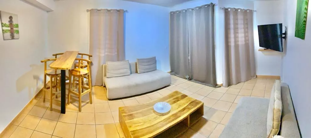 Nos appartements (F2, F3) se trouvent directement sur la plage. Vous bénéficiez d’une vue imprenable sur la baie de Fort de France.