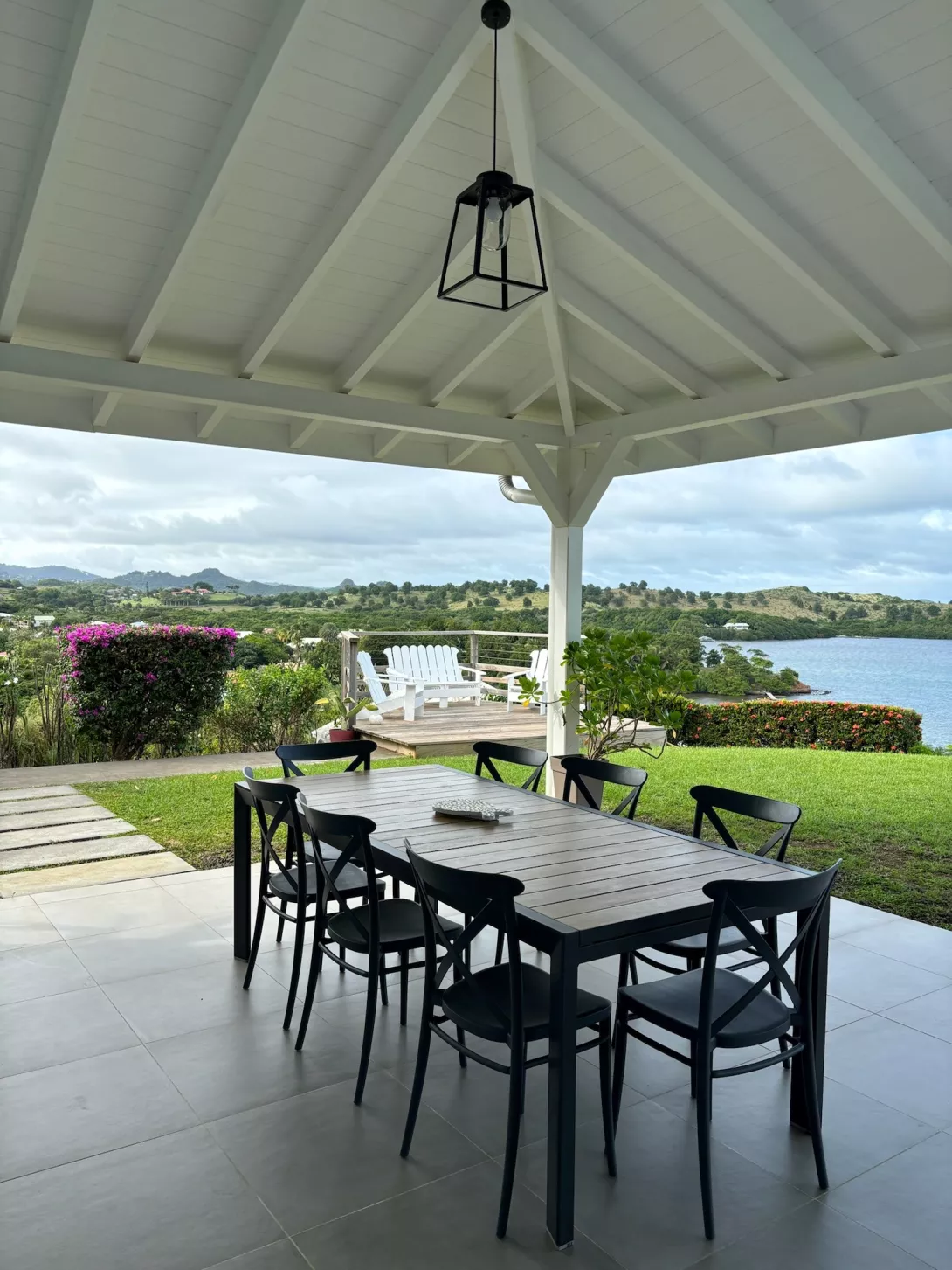 Terrasse couverte idéale pour vos repas en plein air, moments d’apéritifs et détente face à une vue exceptionnelle.