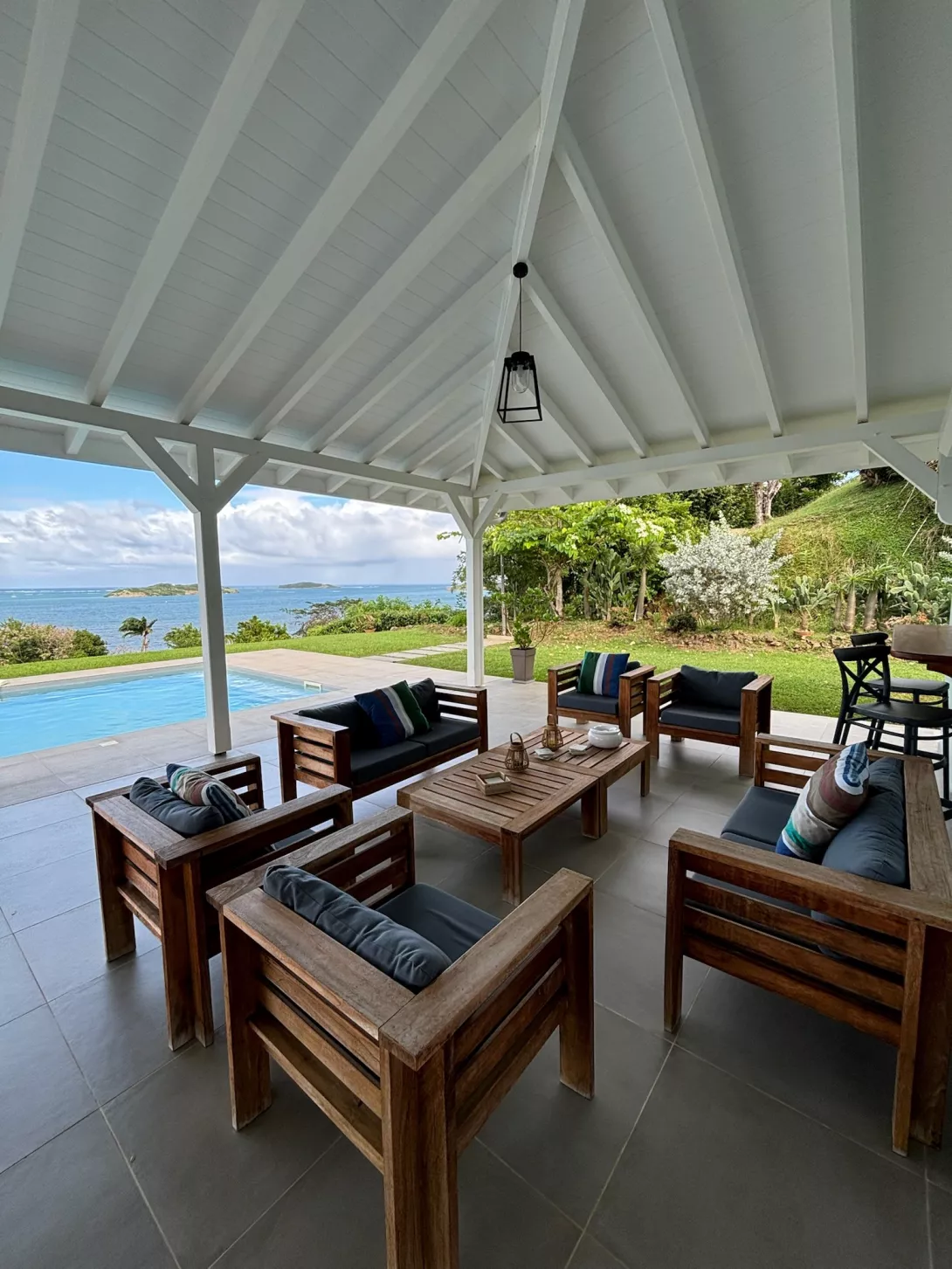 Villa familiale de standing située dans un quartier résidentiel prisé, alliant calme absolu et panorama exceptionnel à 180° sur la mer et les ilets du François, sans aucun vis-à-vis. Classement 4 étoiles par l’office du tourisme pour un gage de qualité et de confort.